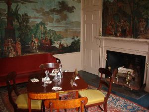 The public is invited to view the historic wallpaper of the East and West Parlors of the King Caesar house.  The DRHS is seeking CPA funds to help restore the valuable collection items.  DRHS Archivist & Historian, Carolyn Ravenscroft will give a talk at 6:30pm exploring the story behind how the mural wallpaper came to Duxbury and why it is worth saving.  Collections Manager, Claire Senatore will be available to answer questions about wallpaper restoration.  There is no charge for this open house.  All are welcome.