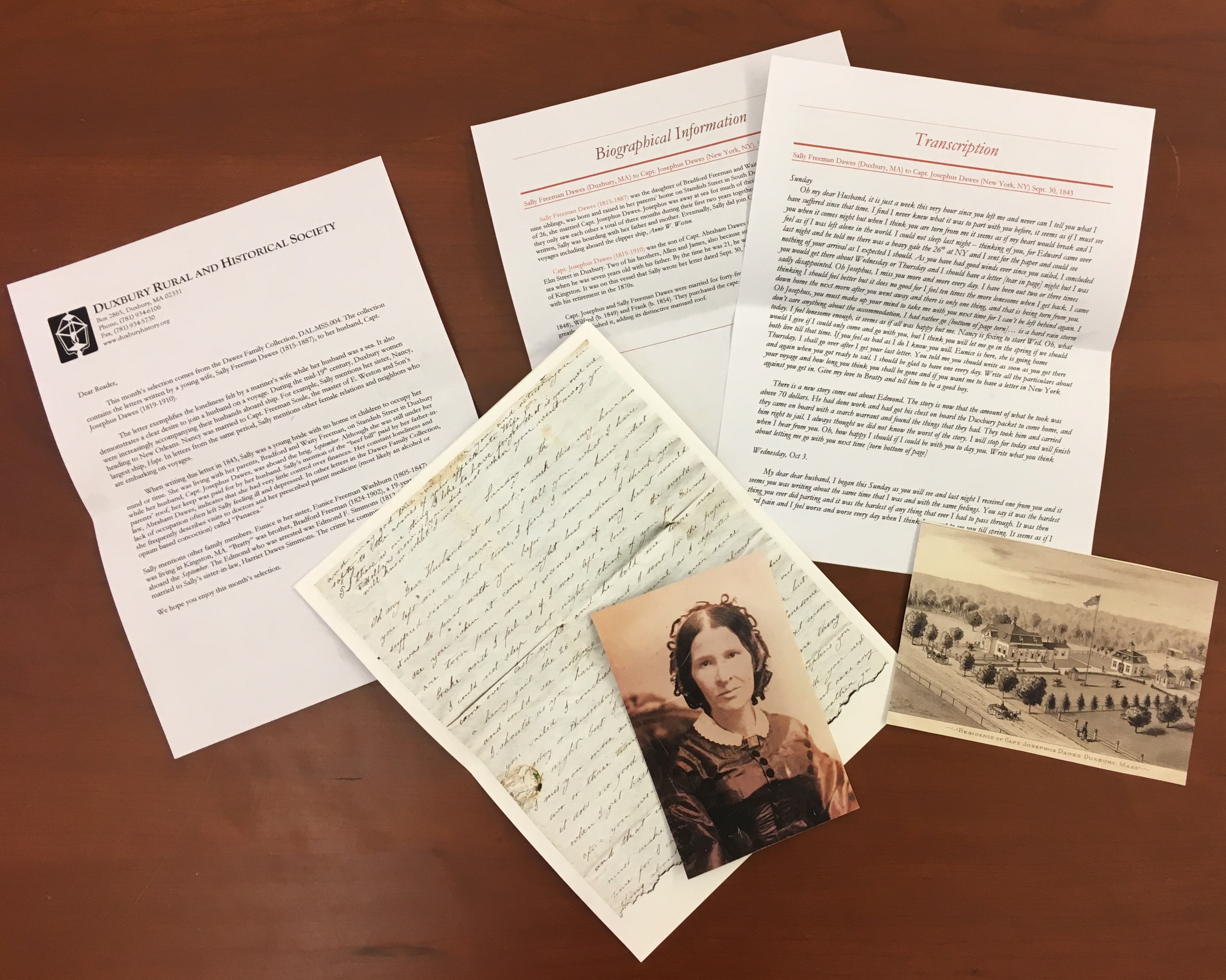 “What a wonderful gift I gave to myself when I subscribed to the DRHS Letter Subscription Service this year. Sealed with carefully designed wax seals, each is delightful and enlightening in its own way. Included with a copy of each letter is a transcription, background information, and a copy of a photo or other item to draw us into the period of history in which the letter was written. I am always surprised and excited when the mail delivers one of these letters from the past. I feel that I am there for a bit of time, out at sea, studying at school, at church, caring for my family at home, at a battleground in the South, in Boston and environs, visiting friends and relatives, etc. One does not have to be a Duxbury resident to enjoy these letters. While they may be local, they also have general appeal for anyone who is interested in history. Thank you, DRHS, for this creative informative charming offering.” – Linda Pisani, Duxbury