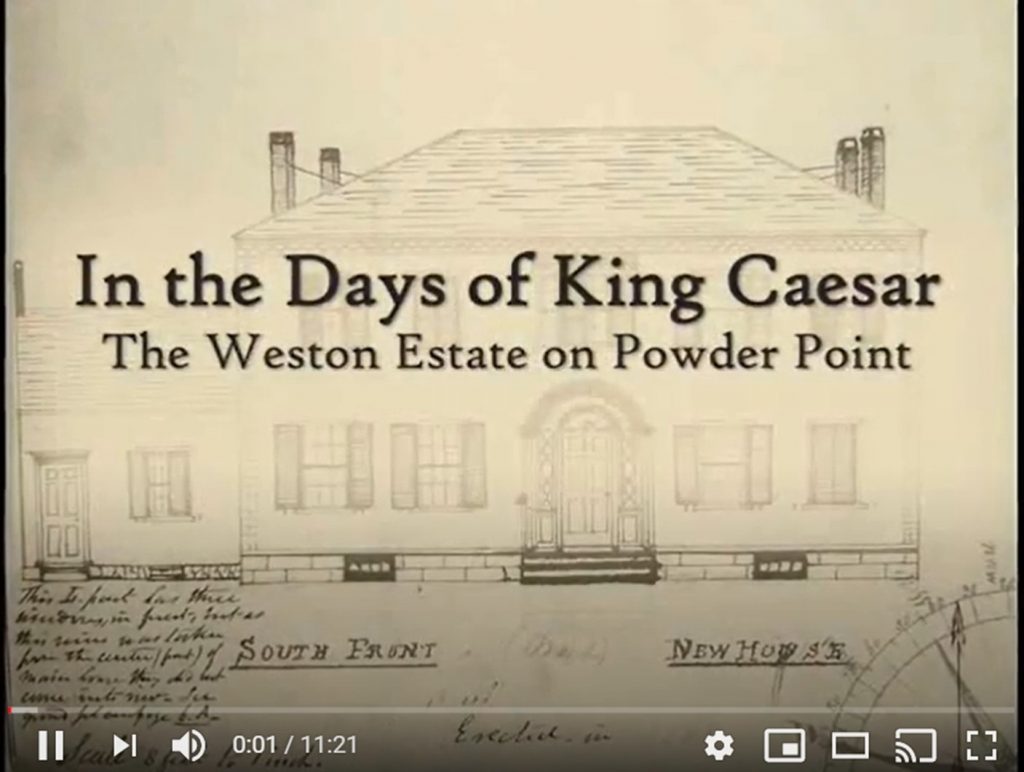“In the Days of King Caesar:” the Weston Estate on Powder Point in Duxbury, Massachusetts. An introduction to the world of Ezra Weston II (“King Caesar”), one of the most successful shipbuilders and merchants in early 19th century New England. Today, Ezra Weston’s home is a historic house museum owned by the Duxbury Rural & Historical Society, and is available for visitation as well as Bumpus Park across the street (the remains of Weston’s wharf).