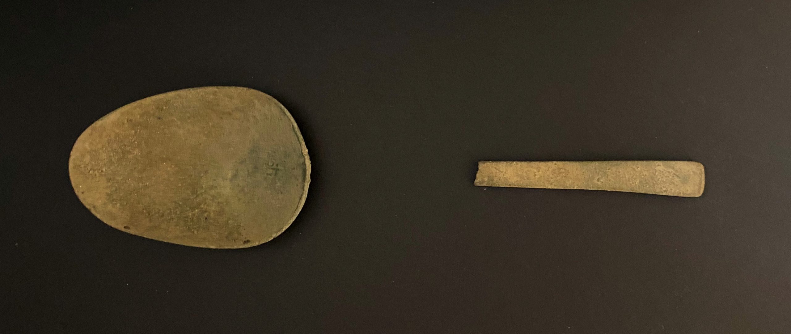 This spoon was discovered on the Brewster property (“The Brewster Lilacs”), which is owned by the Duxbury Rural and Historical Society. It was recovered during an archaeological dig overseen by Craig Chartier of the Plymouth Archaeological Rediscovery Project in 2012. There were a number of 17th century items discovered, understood to have been used by Brewster descendants living on the property.