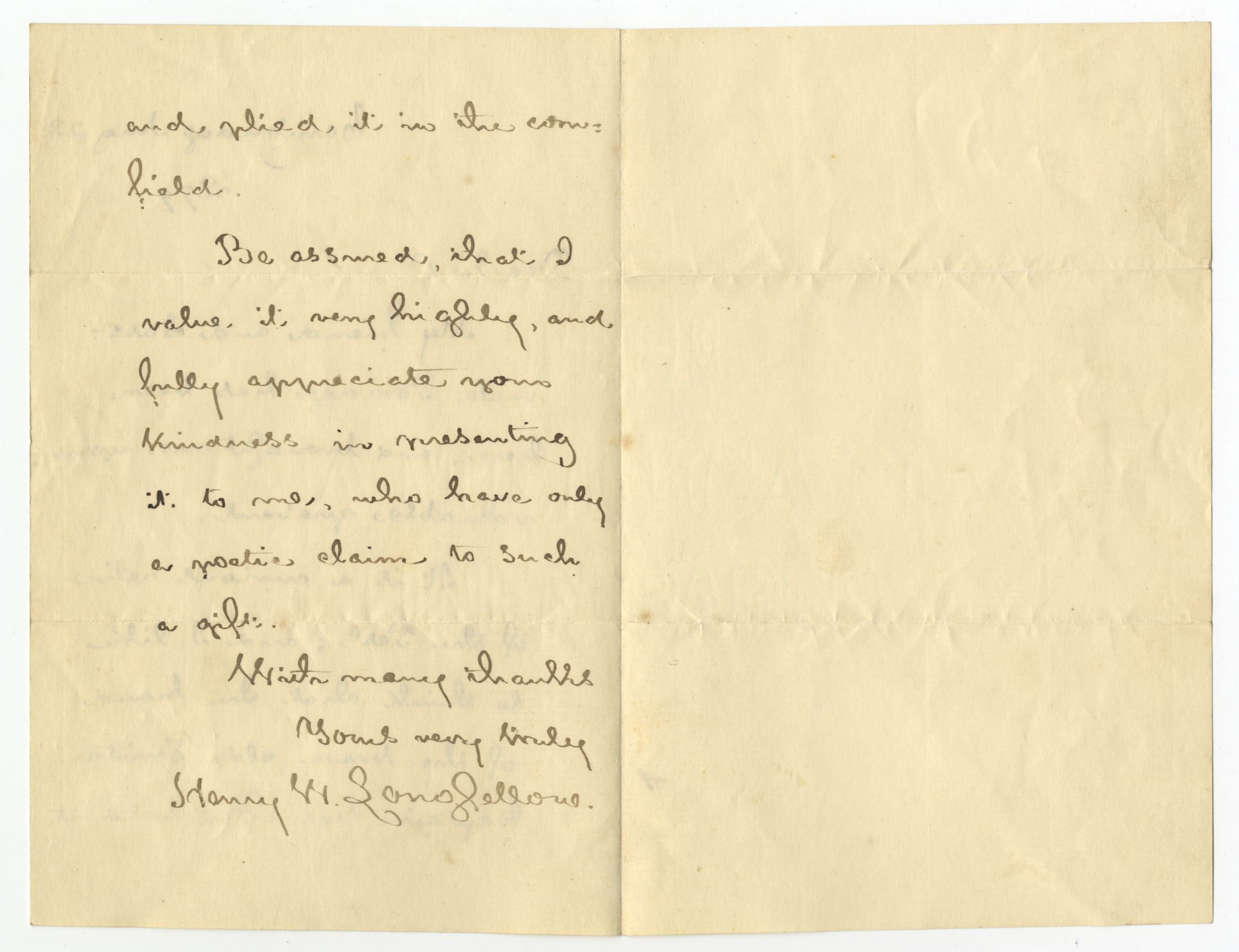 Be assured that I value it very highly and fully appreciate your kindness in presenting it to me, who have only a poetic claim to such a gift.