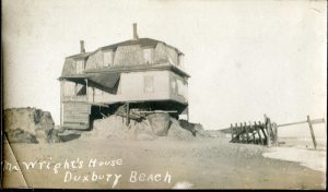 Gurnet Bridge Association, the town of Duxbury, and the county of Plymouth. A storm in 1898, known as the Portland Gale, damaged the three model homes the Wrights had constructed to entice buyers. The destruction of the houses taught a valuable lesson about building on a barrier beach. The Duxbury Beach Association, now the Duxbury Beach Reservation, Inc., was formed in 1919 to preserve the beach, making it the popular destination it is today.