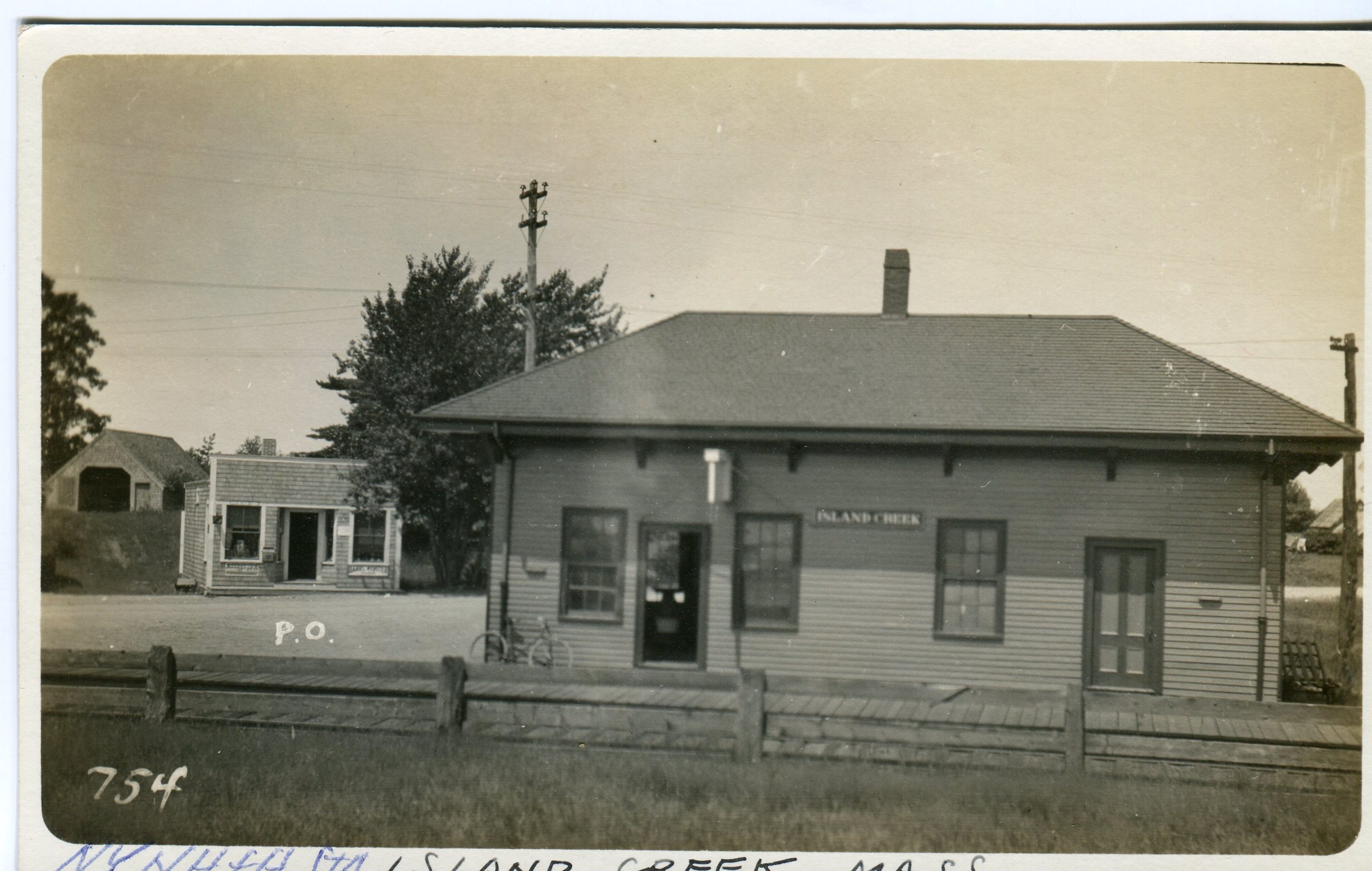 The completed Duxbury & Cohasset railroad opened in August 1871. It would eventually become part of the Old Colony line. There were three stops in Duxbury: Island Creek on Parks Street, South Duxbury on Depot Street, and Duxbury on Railroad Ave. During the earliest years, there were twelve trains a day bringing summer guests and commuters to and from town.