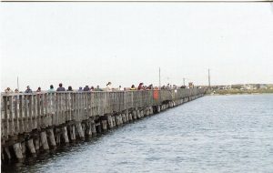 When initially constructed in 1892, the bridge was known as Gurnet Bridge, but at 2200’ in length, it was soon nicknamed Long Bridge. It had the reputation as the longest wooden bridge in the world. In 1985 a fire damaged the original pinewood bridge. A new bridge then opened in August of 1987, made of tropical hardwoods.