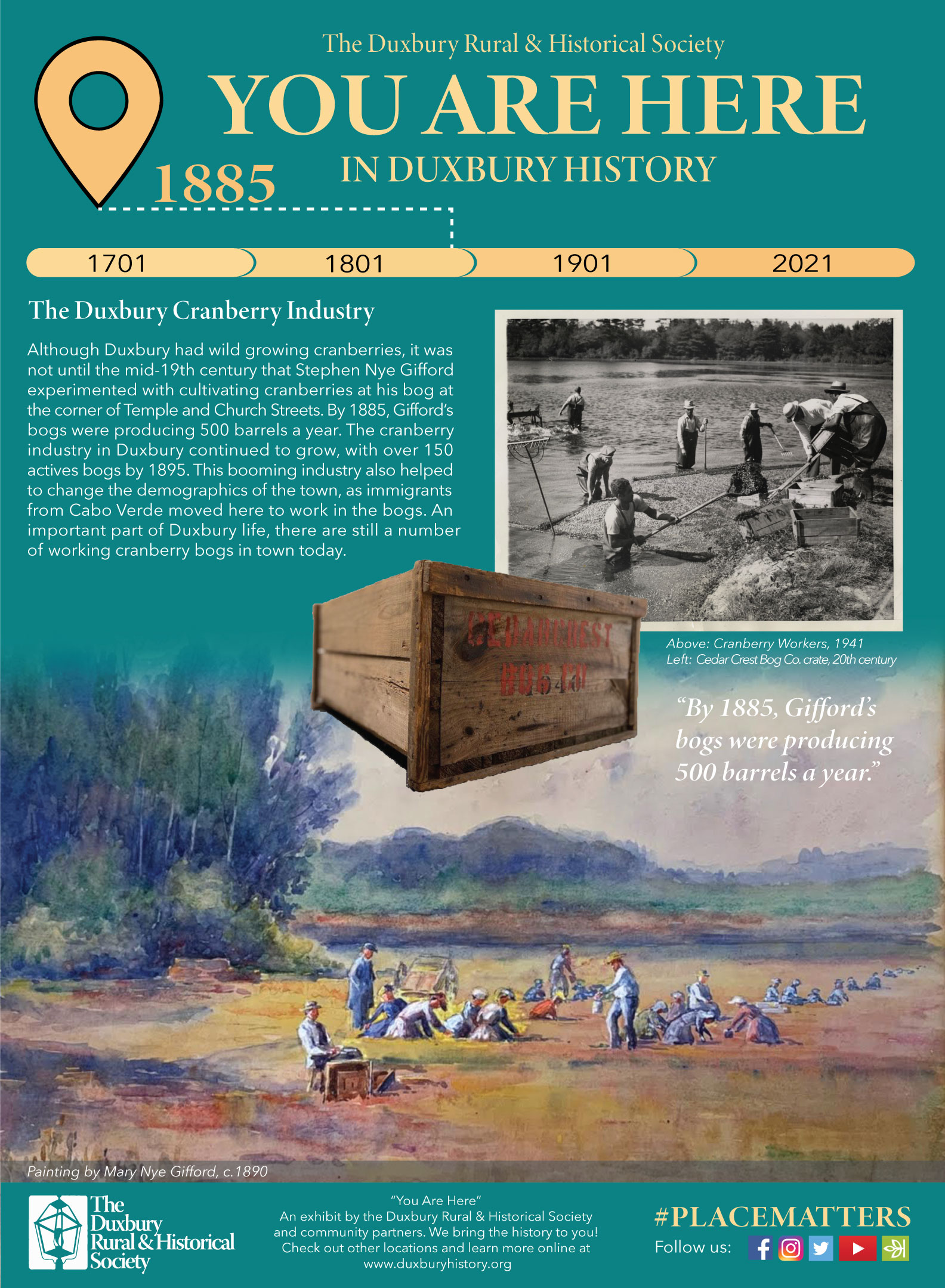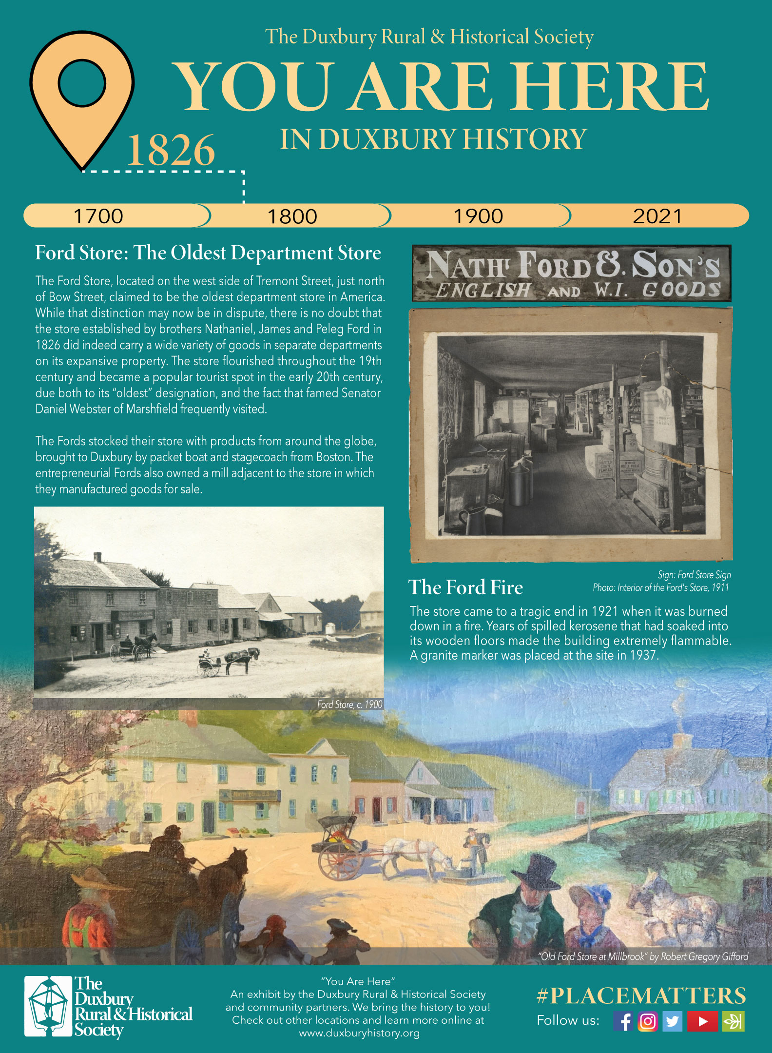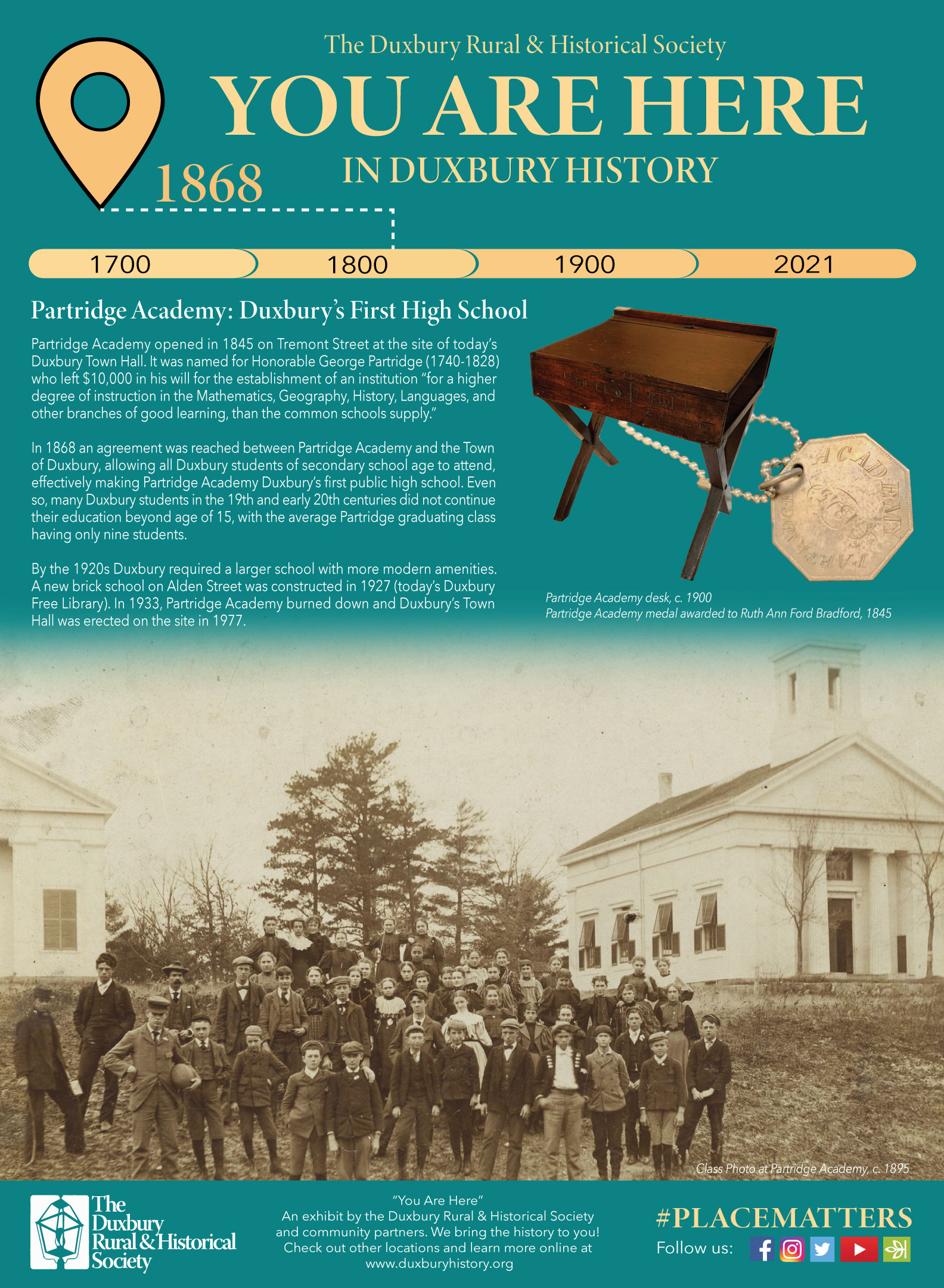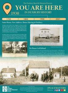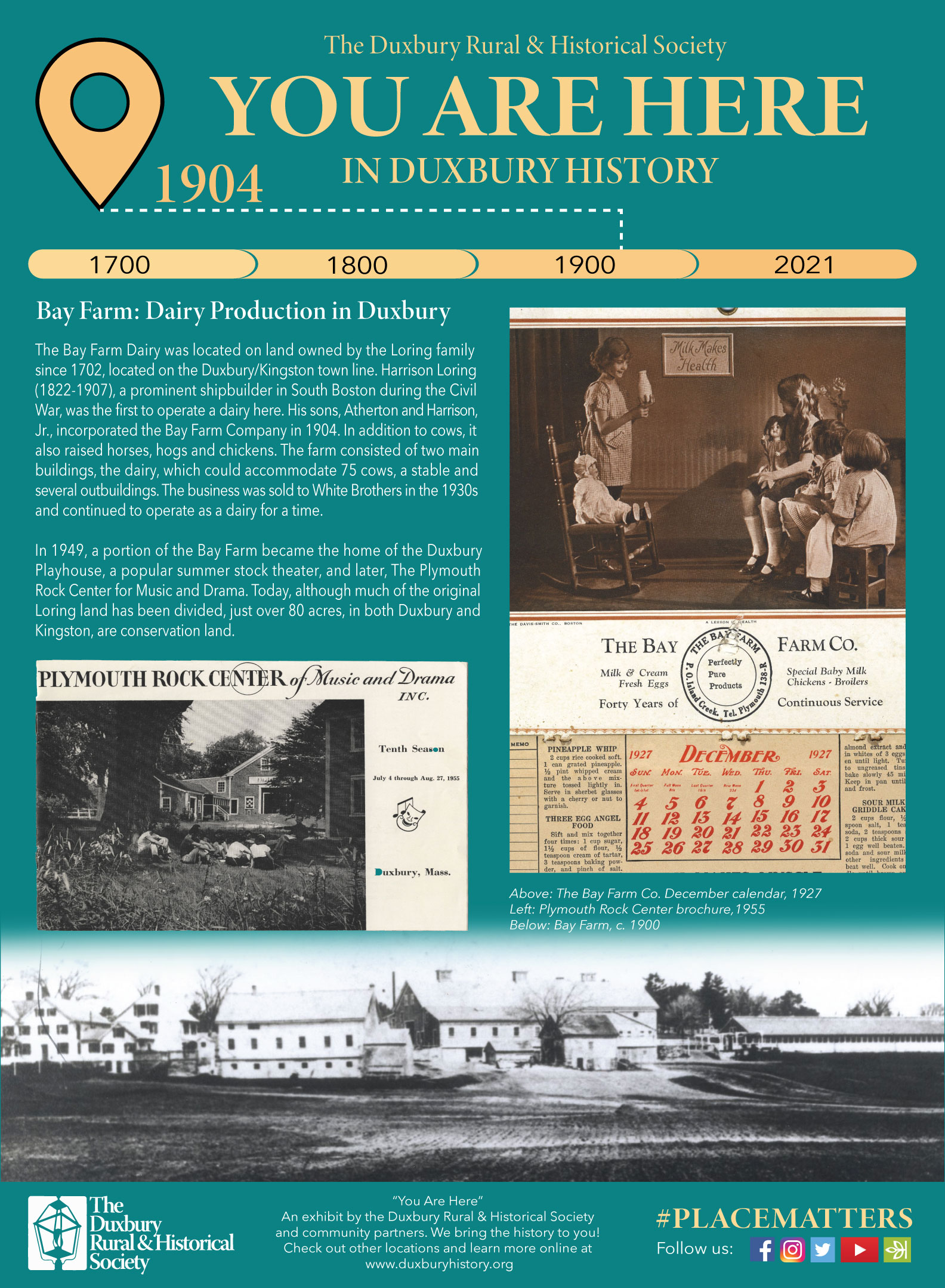 “You Are Here” Special Digital Exhibition. In February 2021, the Duxbury Rural & Historical Society (DRHS) brought the collections out of our buildings, and straight into the community! More than 20 local businesses and organizations hosted panels in their locations for most of the year.